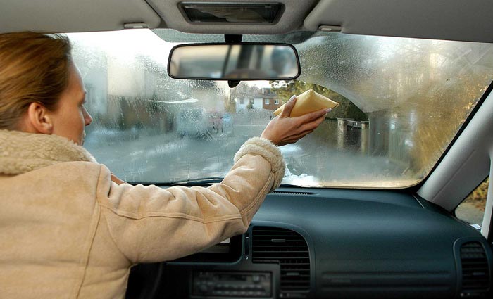 При длительной стоянке автомобиля влажность воздуха в салоне уравниваются с таковыми на улице. Человек, садясь в автомобиль, наполняет салон влажным воздухом от своего дыхания. Капельки воды, оседая на холодном стекле, создают тонкую плёнку, ограничивающую обзор.